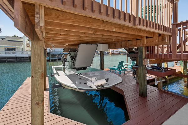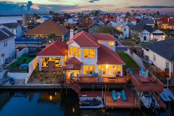 ENTERTAINER’S DREAM HOME, ON A 90 FT WIDE LOT! One Half Lot is Dedicated to the Most Impressive Outdoor Kitchen on the Island! Behind the Private Courtyard, you will find a Gorgeous Kitchen with New Grill & Double Burners, Granite Bar area as well as a Dining table with all the matching Patio Chairs. A Cozy Seating area with a sofa and Gas Log Fireplace has Views to the Canal. Look up at the beautiful wood ceiling, recessed lighting and ceiling fans. Also, a Large Spa & Fountain grace the courtyard. The FULLY FURNISHED & DECORATED Home is equally Impressive with Travertine Stone flooring throughout the first floor. Large Living area with 2-story high ceilings and windows galore. The Gas Log fireplace can be viewed from the living and dining areas. Kitchen has granite countertops, plenty of cabinets, a wine bar, and a breakfast area with views of the fountain. Primary suite is large and has a big, tiled shower, dual sink vanity, walk-in closet & access to the deck and water. Upstairs, you will find a landing with a built-in desk and shelves and views of the water. The other two guest rooms are separated by a full bath & plenty of room for guests. The deck has built-in benches and a covered area for relaxing in the shade. The Lower deck has plenty of room for lounging and fishing. There is a heavy-duty boat lift and a floating Double Jet ski dock. Storm panels, Ice Maker, Refrigerator and Freezer in garage are all included. Upper windows in living have electric storm shutters. Last but not least,,, Breathe! There is plenty of room between you and the neighbors. There is 20 feet on the left side of the house that is currently yard. This is the Island Dream Home you’ve been waiting for! Hurry, before it’s Gone!