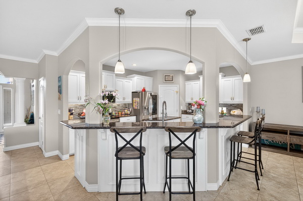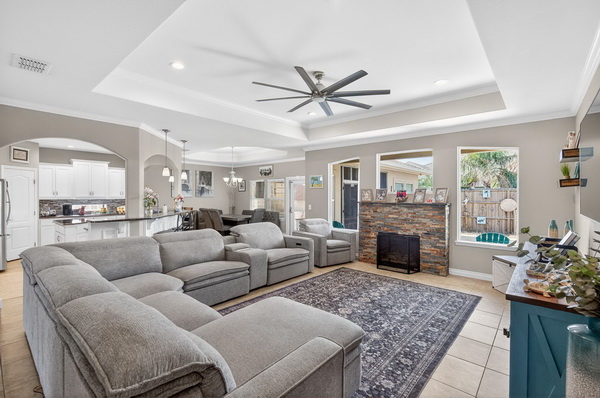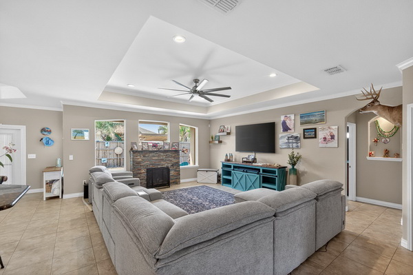 LOCATED JUST MINUTES FROM THE BEACH, 14133 Palo Seco captures the essence of comfortable coastal living with a thoughtful layout designed for both everyday enjoyment and effortless entertaining. The 3-bedroom, 2-bath main house features large guest bedrooms, a welcoming, beautiful entry, and an open-concept living, kitchen, and dining area that creates a bright, airy flow ideal for gatherings. A gas log fireplace anchors the living space, adding warmth and charm year-round. Connected to the main home by a screened-in porch, the 1-bedroom, 1-bath guest quarters offer excellent flexibility—perfect for visitors, extended family, or a private home office—while still feeling connected to the heart of the property. Outdoors, enjoy a chlorine swimming pool with a cabana, small turfed area for dogs or kids, creating a private backyard oasis for relaxing or entertaining after a day at the beach. The side yard includes an outdoor shower and sidewalk, adding both convenience and a true coastal touch. A circular driveway enhances curb appeal and provides ample parking, plus the garage features a mini split and epoxied floors. With its close proximity to the beach and well-designed indoor and outdoor spaces, this property offers an exceptional opportunity to enjoy coastal living at its best. Come Coast Awhile…