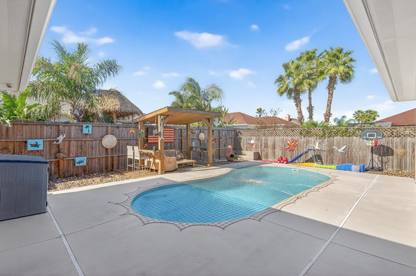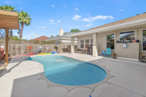 - Backyard w/ pool and child net