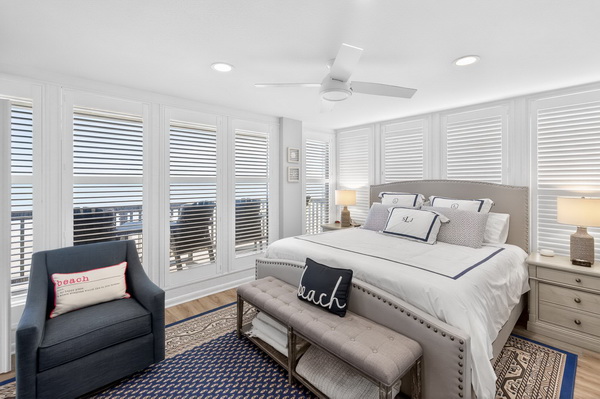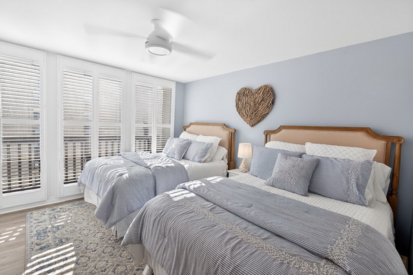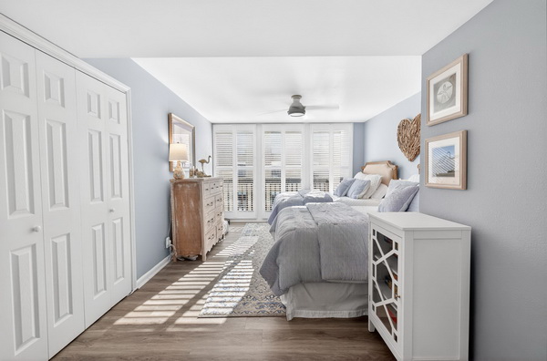 - Bedroom #2. Plantation shutters on the floor-to-ceiling windows.