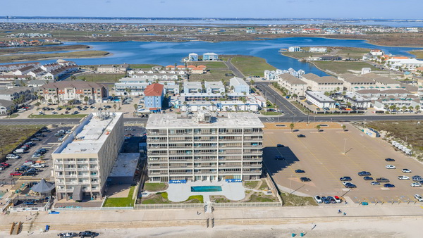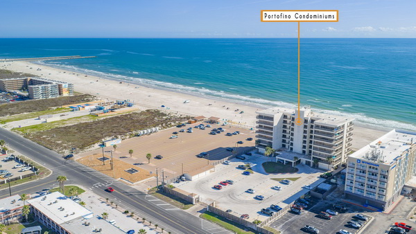 - Lake Padre and Laguna Madre in the distance of this 8-story complex – Portofino Condominiums