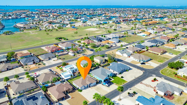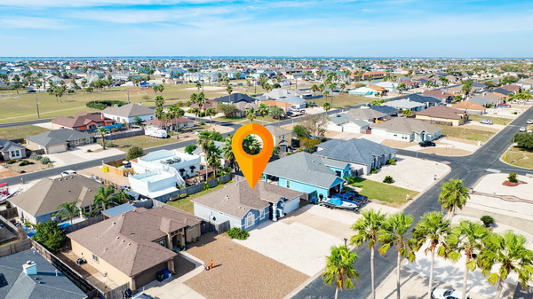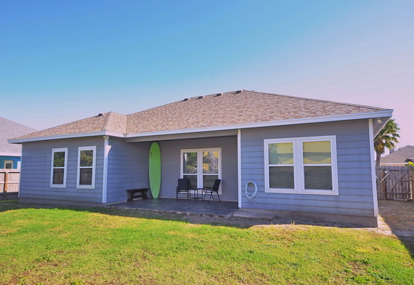 ISLAND LIFE ON PADRE ISLAND-This lovely stucco home, built in 2013, is nestled on the sought-after Padre Island and embodies the essence of comfortable coastal living. Designed with a spacious and open floor plan, the residence offers an ideal setting for both everyday living and entertaining guests. The home features three well-appointed bedrooms and two bathrooms, with laminate flooring running throughout, providing both style and easy maintenance. The kitchen features granite countertops, ample cabinet storage, and a convenient pantry to meet all organizational needs. This open layout ensures seamless movement between the living spaces, creating a welcoming atmosphere. Step outside to the covered patio, an excellent spot for relaxation and outdoor gatherings. The backyard is perfectly suited for adding either a lap or a wading pool, catering to those who appreciate spending time outdoors. Embrace the island lifestyle—Come Coast Awhile… right here on Padre!