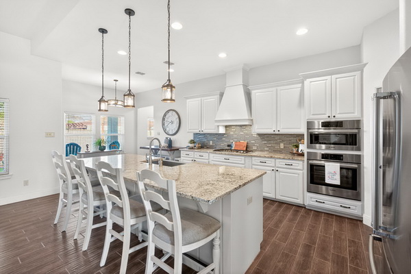 - A kitchen that’s easy to move around. Breakfast bar for additional seating.