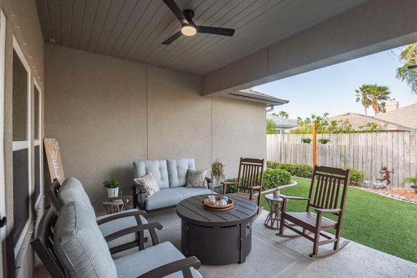 COASTAL ELEGANCE ON THREE FATHOMS BANK – Get ready….this home is about to make someone’s Padre Island dream come true! Built in 2018, one owner, and impeccably maintained, this 2,423sf beauty sits on a prestigious street in one of the Island’s elite Subdivisions. This is truly an effortless move-in home – every detail has been cared for, updated, and thoughtfully improved. Step inside to an open, airy floorplan. A kitchen with granite counters, custom-built cabinetry, and stylish stainless-steel appliances which opens to the spacious living and 2-dining areas. Four spacious bedrooms offer flexibility for every lifestyle – two bedrooms share a classic Jack & Jill bath, the 4th bedroom doubles perfectly as an office. The primary suite is a wonderful peaceful retreat – and, just wait until you see the bath area! This home has ZERO deferred maintenance. Recent upgrades include: New HVAC, rain gutters, storm shutters, outdoor ceiling fans, backyard AstroTurf landscaping, fully fenced yard, generator-ready setup, tankless water heater, water softener, reverse osmosis system, and more. As you step outside to the covered patio you’ll note it’s been designed for entertaining, relaxing, or simply enjoying those Island breezes. And yes, you’re just a short drive from the beach. Homes THIS polished, THIS well cared for, and THIS perfectly located don’t come along often. Come Coast Awhile….right here!