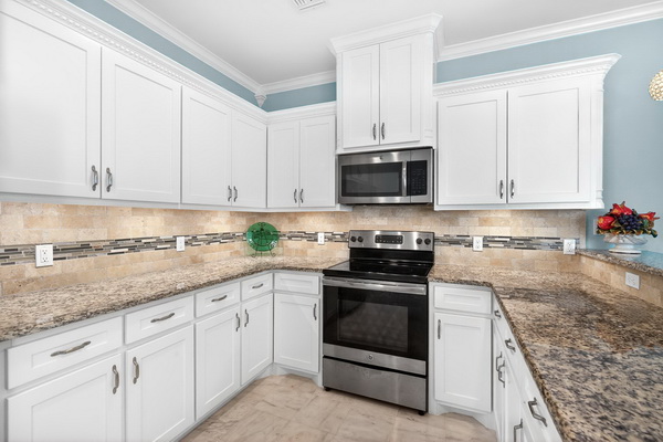 - Granite counters and stainless appliances.
