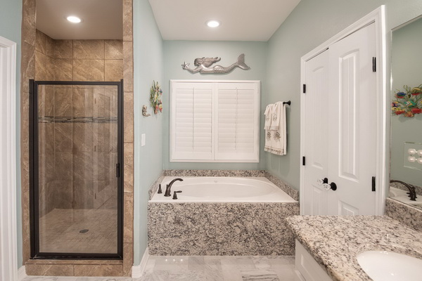 - Dual sinks. Jetted tub. Separate shower.